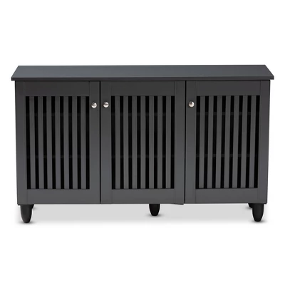3 Door Fernanda Wooden Entryway Shoe Storage Wide Cabinet Gray – Baxton Studio