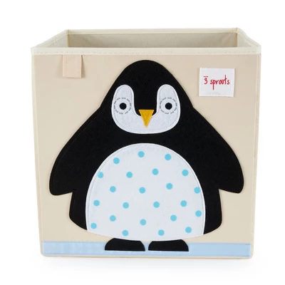 Keep your little one’s toys and clothes organized with the 3 Sprouts Fabric Storage Bin. These storage boxes are a great organizational tool for a nursery or playroom.The square fabric storage bins have an adorable, felt applique penguin and bright orange tiger on their fronts and are designed to fit most storage units. This arctic penguin and striped tiger add a fun pop of color to any space, while the neutral backgrounds complement a variety of color schemes and decor themes.A convenient pull tab makes it easy for kids and adults to remove the cubby bin from shelving units. The fabric container is reinforced with cardboard for added durability. The storage bin is collapsible, making it easy to fold and store away when not in use. Use this square storage bin to organize toys, clothes, diapers, and more without detracting from the decor of the room. The 3 Sprouts Fabric Storage Bins are sure to delight your little one while keeping your home neat and clean.