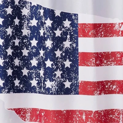 Show off your American pride throughout patriotic holidays or all year round! This lightweight woven shower curtain features an outline of the United States of America covered with the national flag. 12 button holes line the top for easy hanging. Use of a liner is recommended; liner and hooks sold separately.