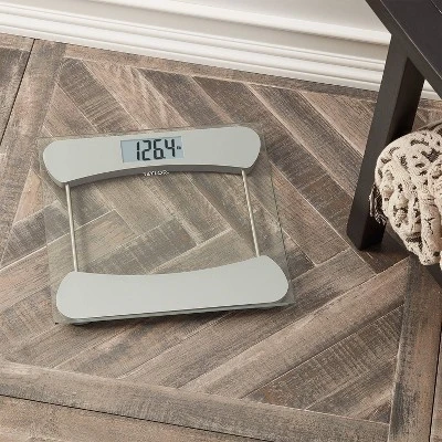Beautifully styled with precision technology is featured with the Taylor 7549 Glass Digital Scale. Designed to accurately weigh and track differences in a stylish clean look, the Taylor 7549 will be an essential part of monitoring weight goals. Four precise sensors are surrounded by a silver base and stainless steel accents, and topped with a clear tempered glass platform will look great wherever it is used. A 11.8″ x 11.8″ platform provides foot stability for up to 400 lbs (180 kg) capacity. High 400 lb Capacity in 0.2 lb increments (lb/kg/st). Two AAA batteries included. Provided in the box are clear instructions, troubleshooting tips and details on the 5 year limited warranty.