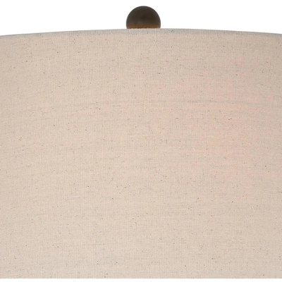 - Tapered cream fabric drum shades. 6-foot long black cords and plugs.