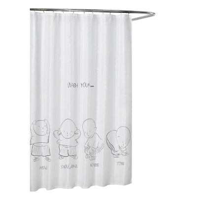 Head and Shoulders Shower Curtain by Moda, features cute little characters adding a sense of child-like whimsy to this tonal shower curtain. Sketched in soft gray on a frosted white backdrop this curtain will work well with all dƩcor. This shower curtain is made of 100% PEVA, and is waterproof. Easy care, just wipe clean.