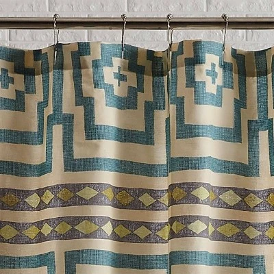 Hypnotic was inspired by a vintage African textile Justina spotted at a market in Paris. The geometric Greek key-like pattern makes this shower curtain feel classic and ripe for layering to complete the global-modern look.