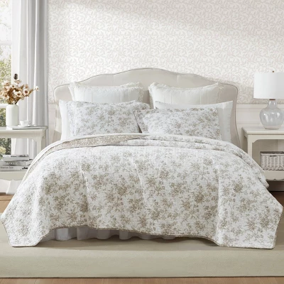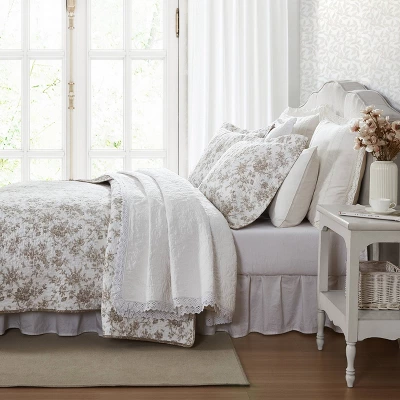 Laura Ashley Walled Garden 100% Cotton Quilt Bedding Set Brown