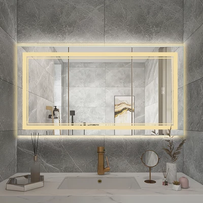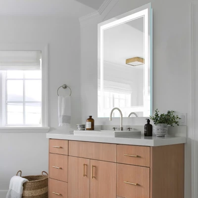 This lighted mirror adds just the right amount of light to your morning or evening routine. It has a strand of LED light around the back to backlight the mirror, while an illuminated trim on the mirror face adds even more glow to your face. If needed, you can simply press the start button for three seconds to change light intensity from normal to brightest. Plus, you can change three different colour temperatures.