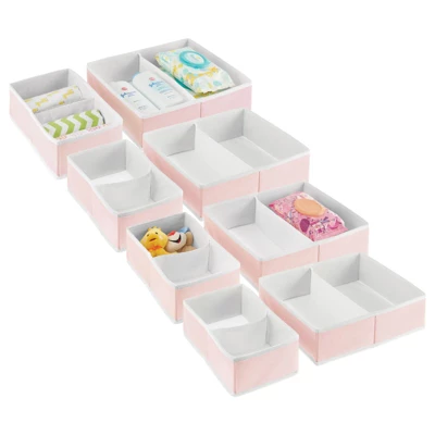 These Fabric Drawer Organizers by mDesign are the perfect solution to conquering cluttered nurseries, dresser drawers, bedrooms, and closets. They create customized, coordinated storage so you can keep all of your baby’s daily essentials at your fingertips. The open tops make contents easily visible and accessible even when you have your hands full. Use them to organize the closet, changing table, dresser top, drawers and any area in need of a little organization!