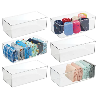- These plastic storage organizer bins keep closet and dresser clutter under control