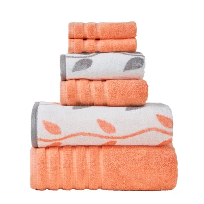 Modern Threads 6 Piece Yard Dyed Towel Set, Organic Vines.