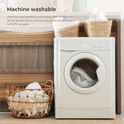 - Two sizes for perfect fit, choose between 90x90in and 108x90in to ensure a perfect fit for your bed. Machine washable, machine wash gently in cold water, then tumble dry at low temperature, remove and gently pat the down to fluff it up again