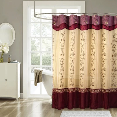 Priscilla Embroidered Shower Curtain With Double Valance By RT Designers Collection