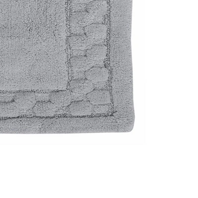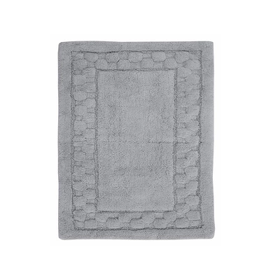 Luxurious and super soft, this cotton bath rug with a non-slip back in a sculptured border design is a fine addition to your bathroom dĂ©cor. This luxurious bath rug is made with 100% soft plush cotton. It’s super soft to the touch with a dense lush pile. It’s the ultimate in comfort while being extremely absorbent and functional. The elegant range of contemporary colors will enhance any bathroom decor. Color: Silver. Available sizes: 17″ x 24″ and 24″ x 40″.