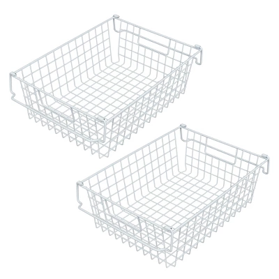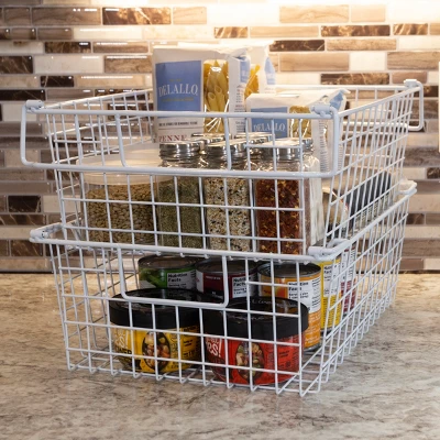 - DURABLE DESIGN – These kitchen storage containers are made of durable metal wire with smooth edges for safety and lasting use. The attractive white color of the shelf organizer set is sure to blend in with most dĆ©cor styles.