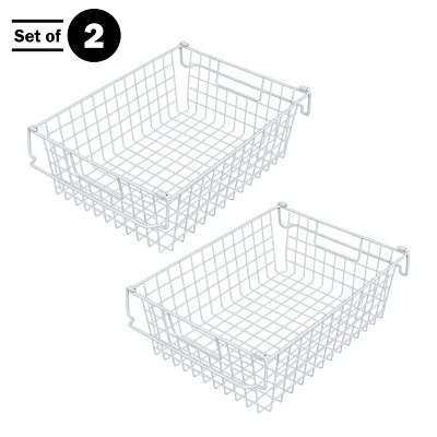 - SET OF 2 BASKETS – This storage basket set comes with 2 wire baskets for closet, bathroom, pantry, and kitchen organization. The bathroom storage bins are stackable to save space, perfect for small kitchens, apartments, dorm rooms, or RVs.