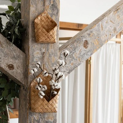 Enhance your walls with this set of natural hanging baskets from Foreside Home and Garden. These baskets boast a beautiful traditional style, crafted entirely from woven rattan. Each one hangs from a natural jute rope hanger, secured with metal rivets for stability. Elevate your front door decor with these baskets that will transition seamlessly throughout all seasons. Great for seasonal faux stems, grasses, and florals.