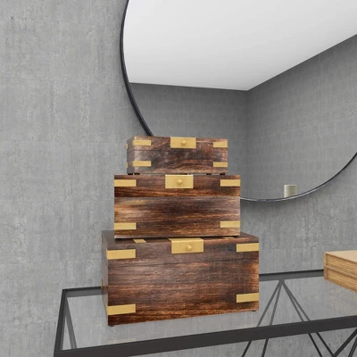 - ā¢This 3-piece real wood jewelry box set feature brass plate inlays with rivet accents