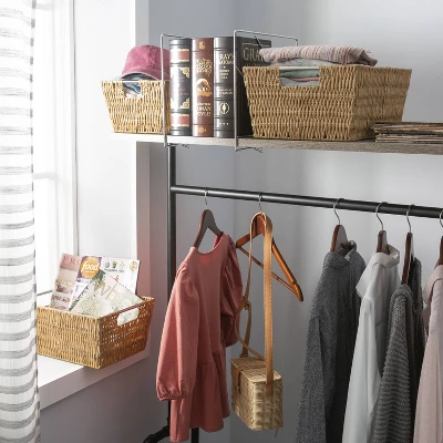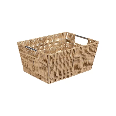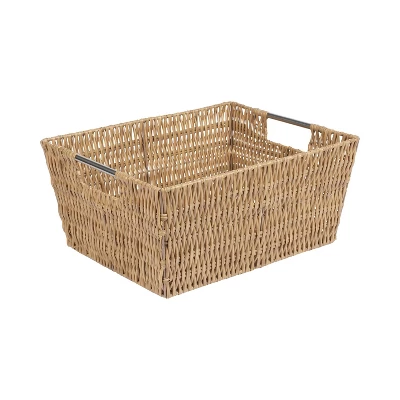 Organize and create storage in your home with the Simplify Rattan Tote Basket Collection. Simplify’s Rattan Tote is a PE Basket with an iron frame and 2 sturdy stainless steel carry handles. It is strong andĀ durableĀ prolonging it’s life, and it’s lightweight design makes it easy to lift and carry. Fits anyĀ home decor with it’s wide selection of colors. Store your household belongings and organize space with these stylish baskets. stack them together in a corner of your craft area, home office or dorm to keep your essentials close at hand in an organized manner.
