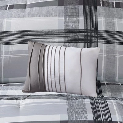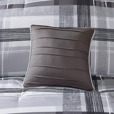 Bring casual comfort to your bedroom with the Intelligent Design Slate Plaid Comforter Set. Featuring bold contrasting hues, a hand-drawn plaid design is printed on the soft comforter and 2 shams (1 in Twin/TwinXL) for a handsome and cozy look. A solid reverse provides a rich touch of color to complement the top of the bed, while 2 decorative pillows with fabric manipulation and embroidery complete the bedding set. Machine washable for easy care, this plaid comforter set is made from ultra-soft microfiber for a comfortable feel and a trendy look. This plaid comforter set uses antimicrobial treatment that provides built-in freshness protection, reducing the growth of odor causing bacteria to keep fabric lasting longer.