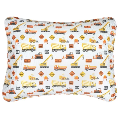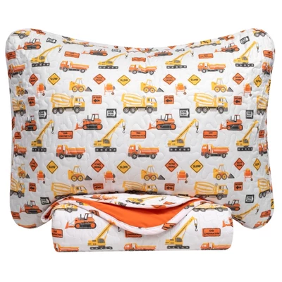 Cars, trucks, buses, planes and helicopters whiz by on this ultra soft Quilt set. Assorted vehicles are printed in bright, eye-catching colors. Oversized fit gives you the perfect amount of overhang! Add our matching sheet sets to complete the look. Oversized Sham features envelope closure Quilt reverses to Solid Orange Filling 60% Cotton, 40% Polyester Covering 100% Polyester Full/Queen includes: 1 Quilt and 2 Pillow Shams Machine wash cold, do not bleach, do not iron, tumble dry Size: Full/Queen: Comforter 90″L x 90″W, Shams 20″L x 26″W