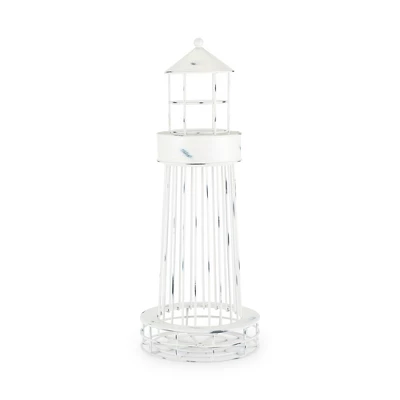 Treasure your souvenir corks from memorable nights with friends and family by displaying them in this finely crafted Lighthouse Cork Holder.Crafted from painted metalWeathered white finish Holds approximately 120 corks (not included)Stands 18 inches tall