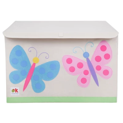 This playful, practical toy chest will help keep bedrooms and playrooms organized! The chest is large enough to hold lots of toys, and the lid closes to keep the toys from view. Side handles make moving the chest easy, and cardboard inserts keep the sides stiff.